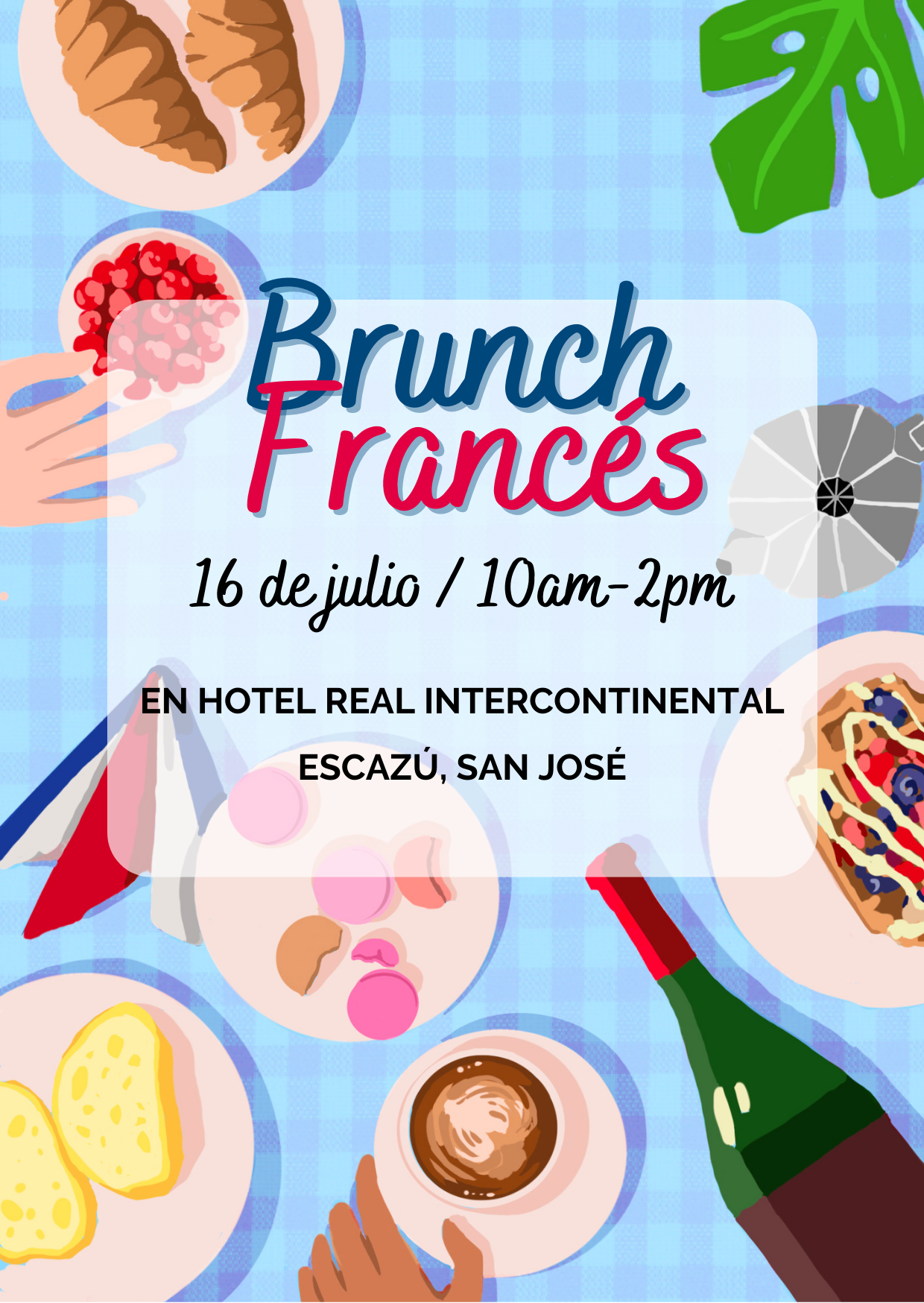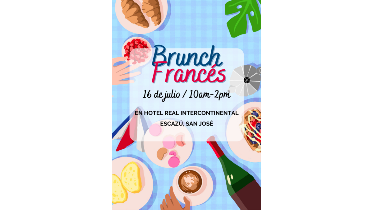 Découvrez notre prochain événement : Brunch Français à l'Hôtel Real Intercontinental d'Escazú de 10am à 2pm le 16 juillet (événement privé)