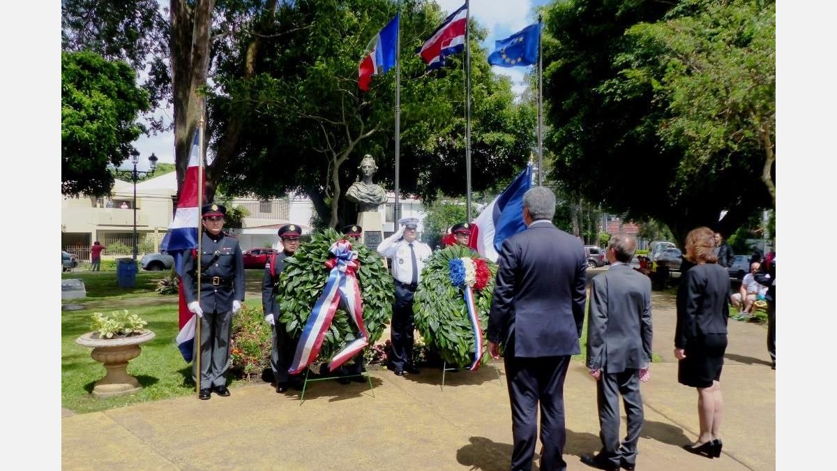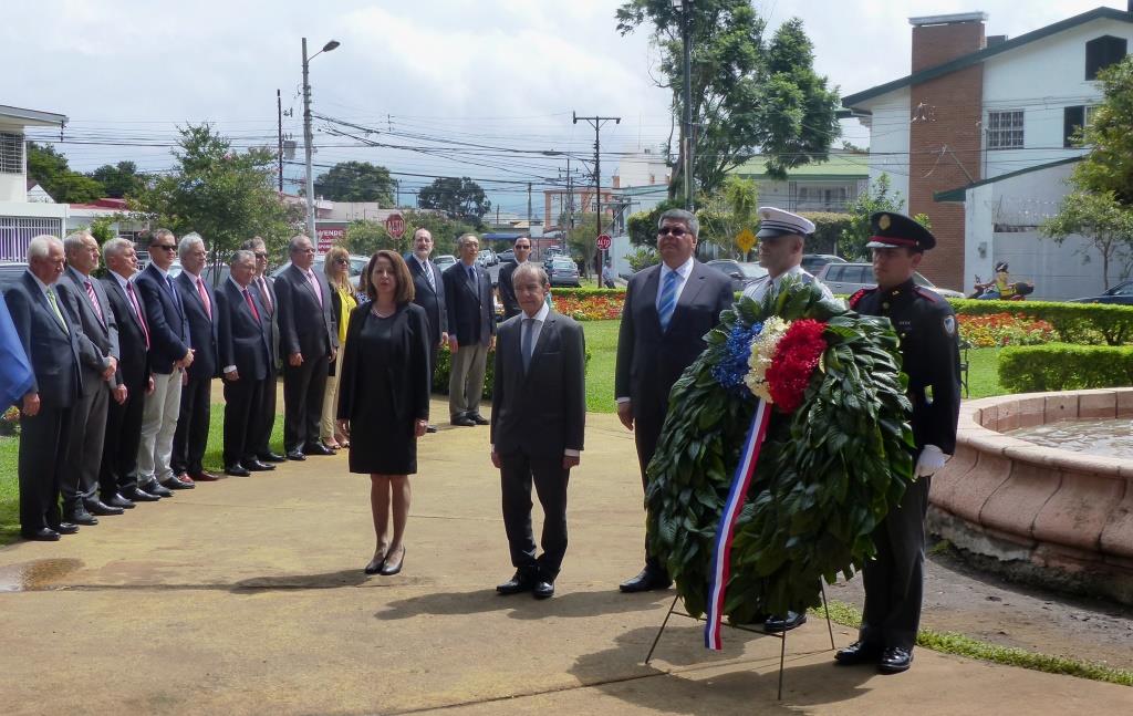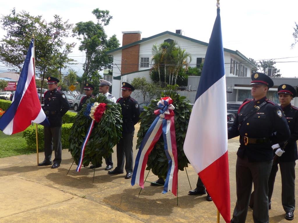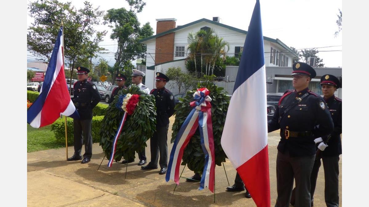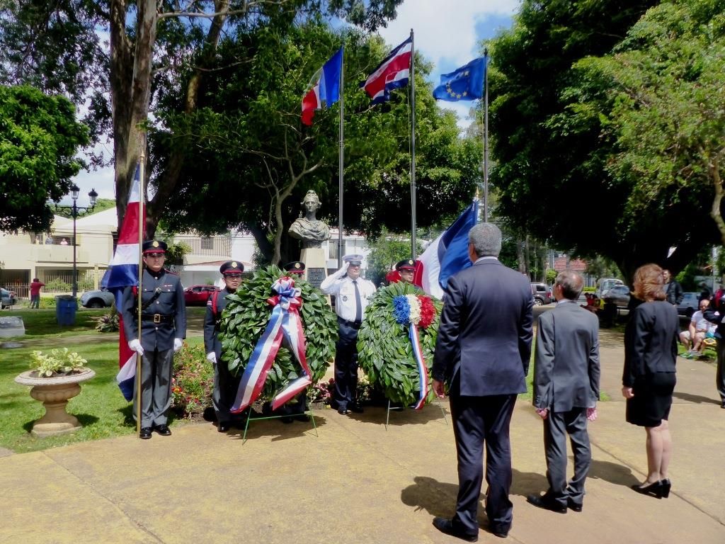 Le jour antérieur, vendredi 13 juillet, a eu lieu la cérémonie du dépôt de gerbe au Parque de Francia, également avec la présence de Monsieur l'Ambassadeur de France et de personnalités politiques, accompagnés d'un orquestre.