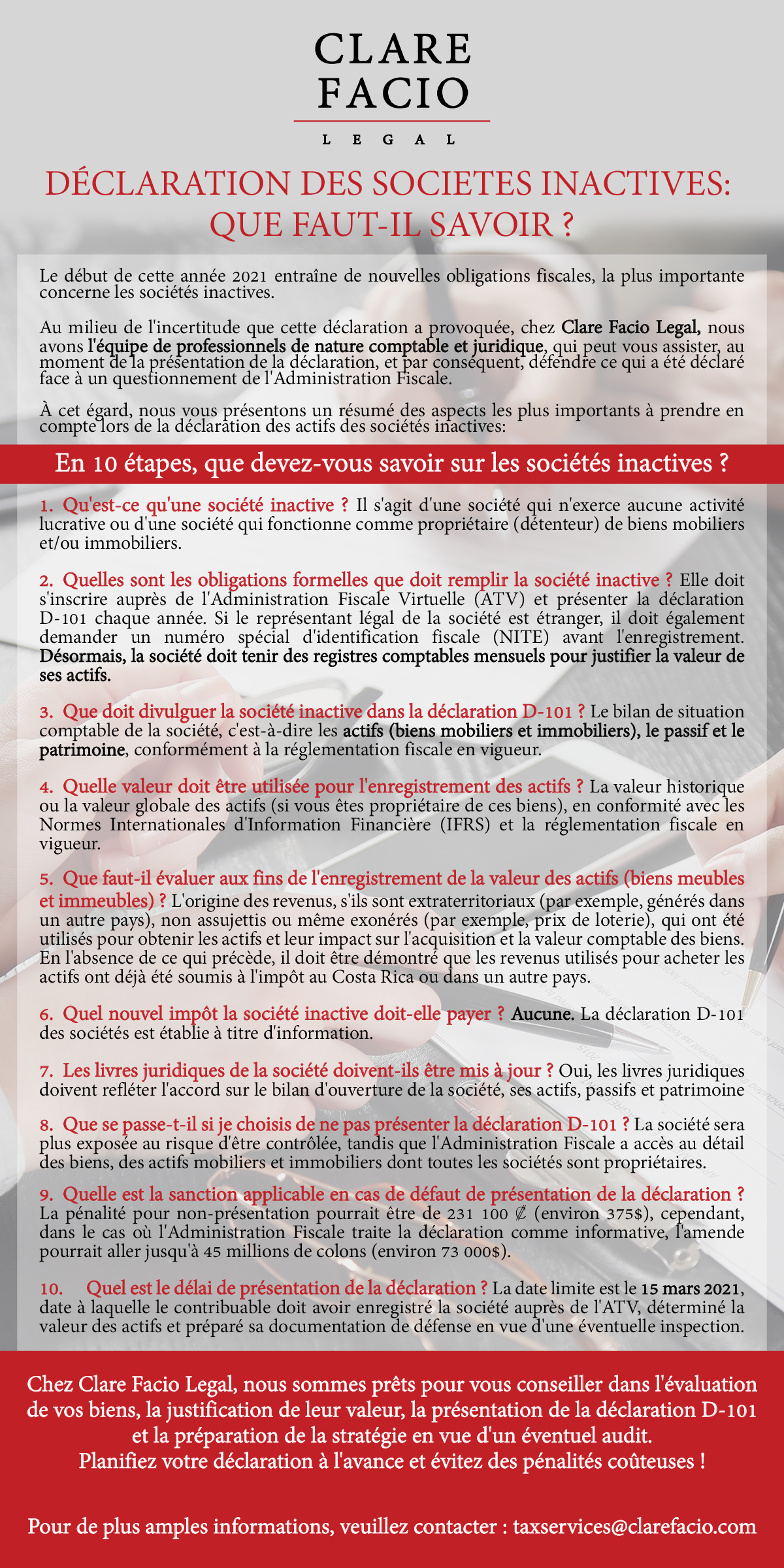 Nous vous partageons ces informations sur la Déclaration des sociétés inactives, fournie par notre affilié Clare Facio Legal.