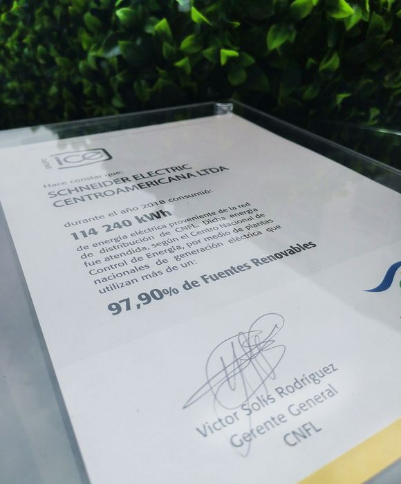 Cela a été également l’occasion pour Schneider Electric de recevoir le certificat de la Compañía Nacional de Fuerza y Luz attestant de son utilisation d’énergie renouvelables en 2018.