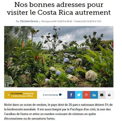Le Figaro, l'un des journaux les plus lus en France a mentionné notre affilié Vincent Varenne de Vert Costa Rica dans un article sur le Costa Rica!