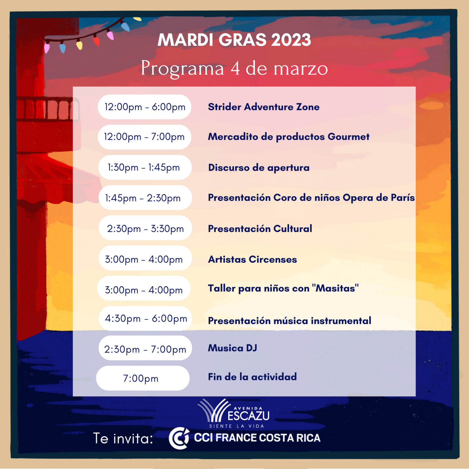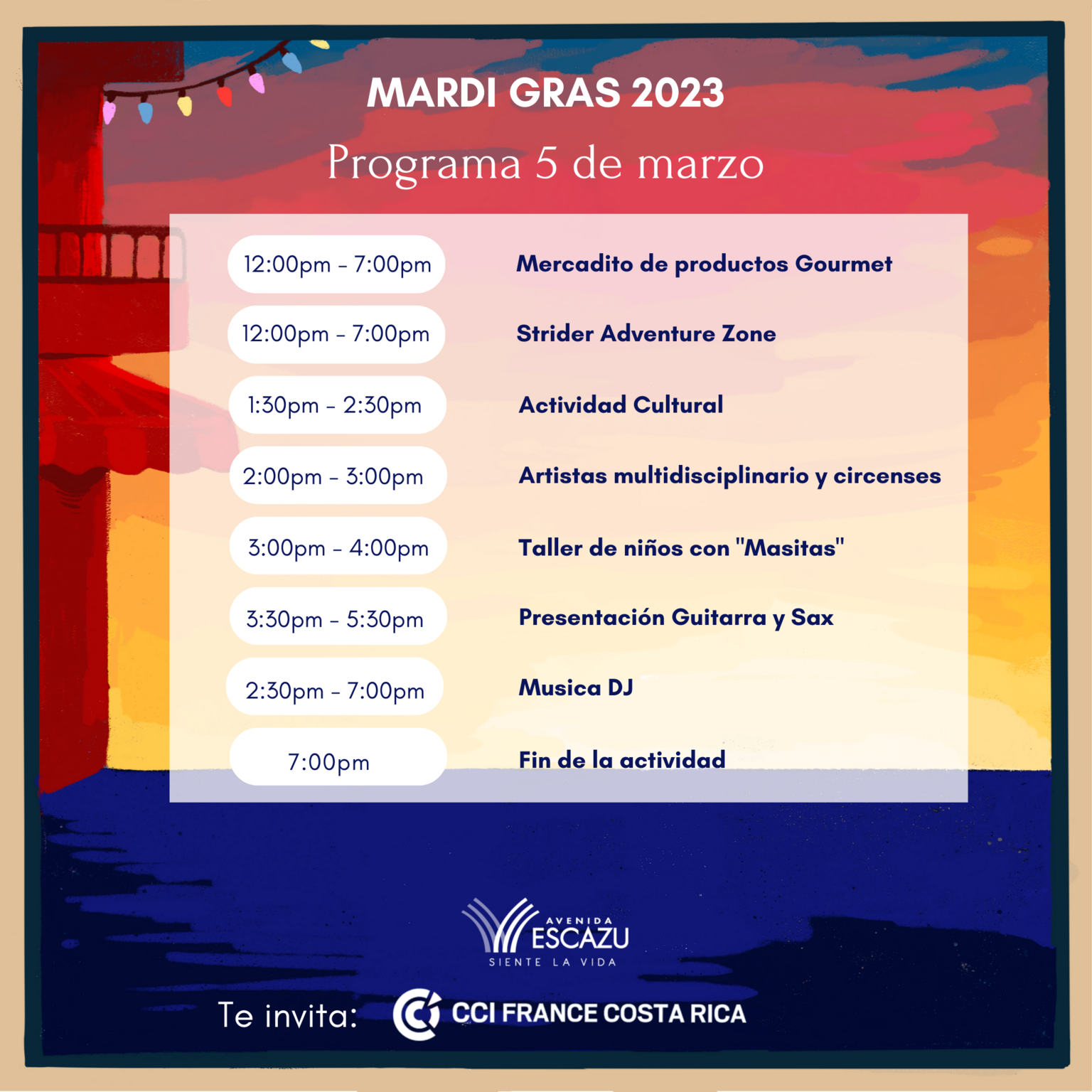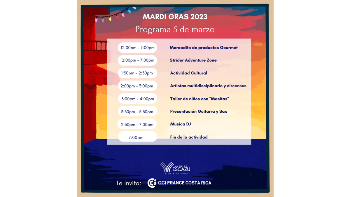Mardi Gras 2023 est de retour le 4 et 5 mars à Avenida Escazú 12h à 19h