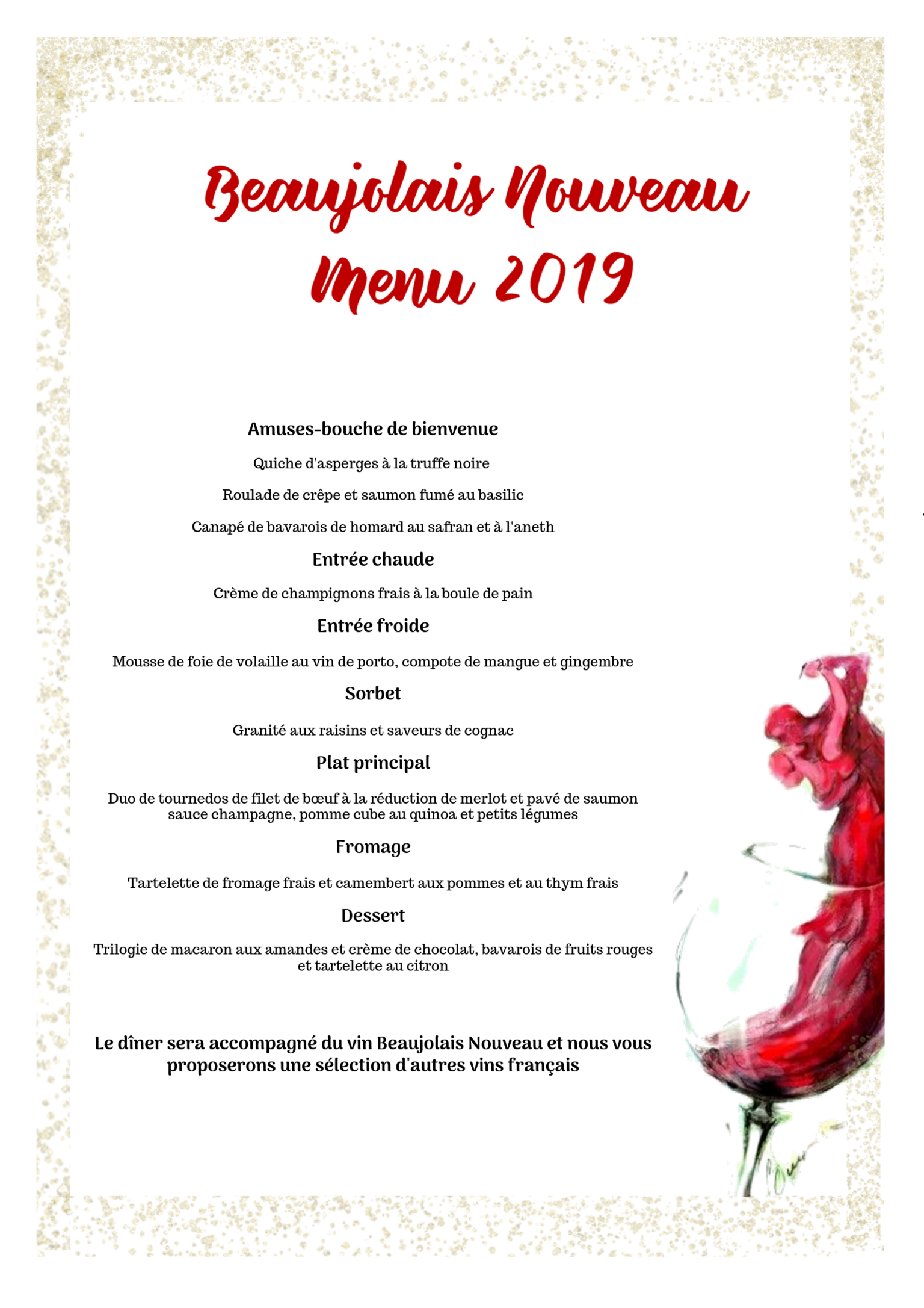 La CCI France Costa Rica a le plaisir de vous partager le menu du Beaujolais Nouveau 2019.