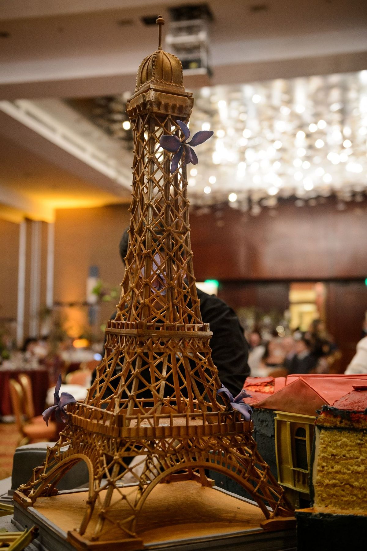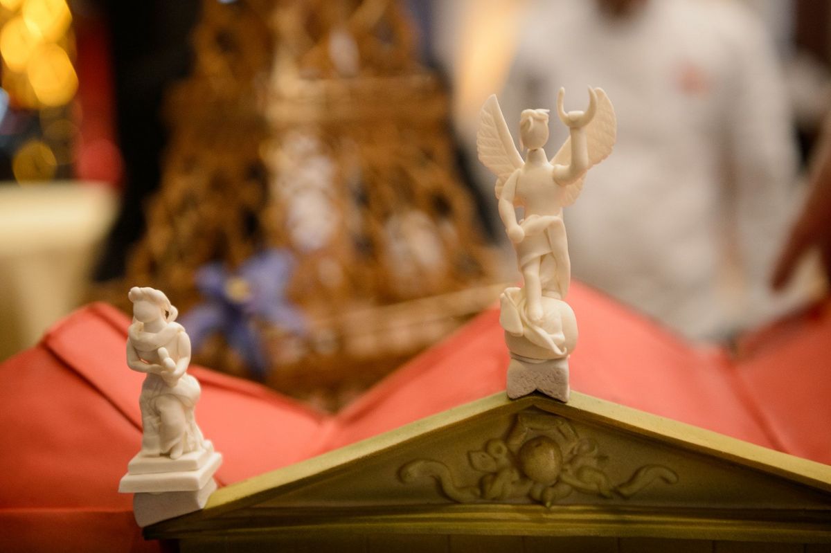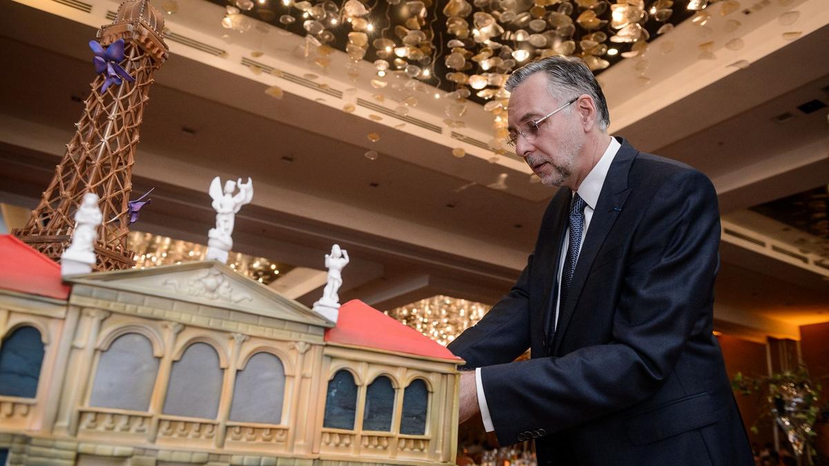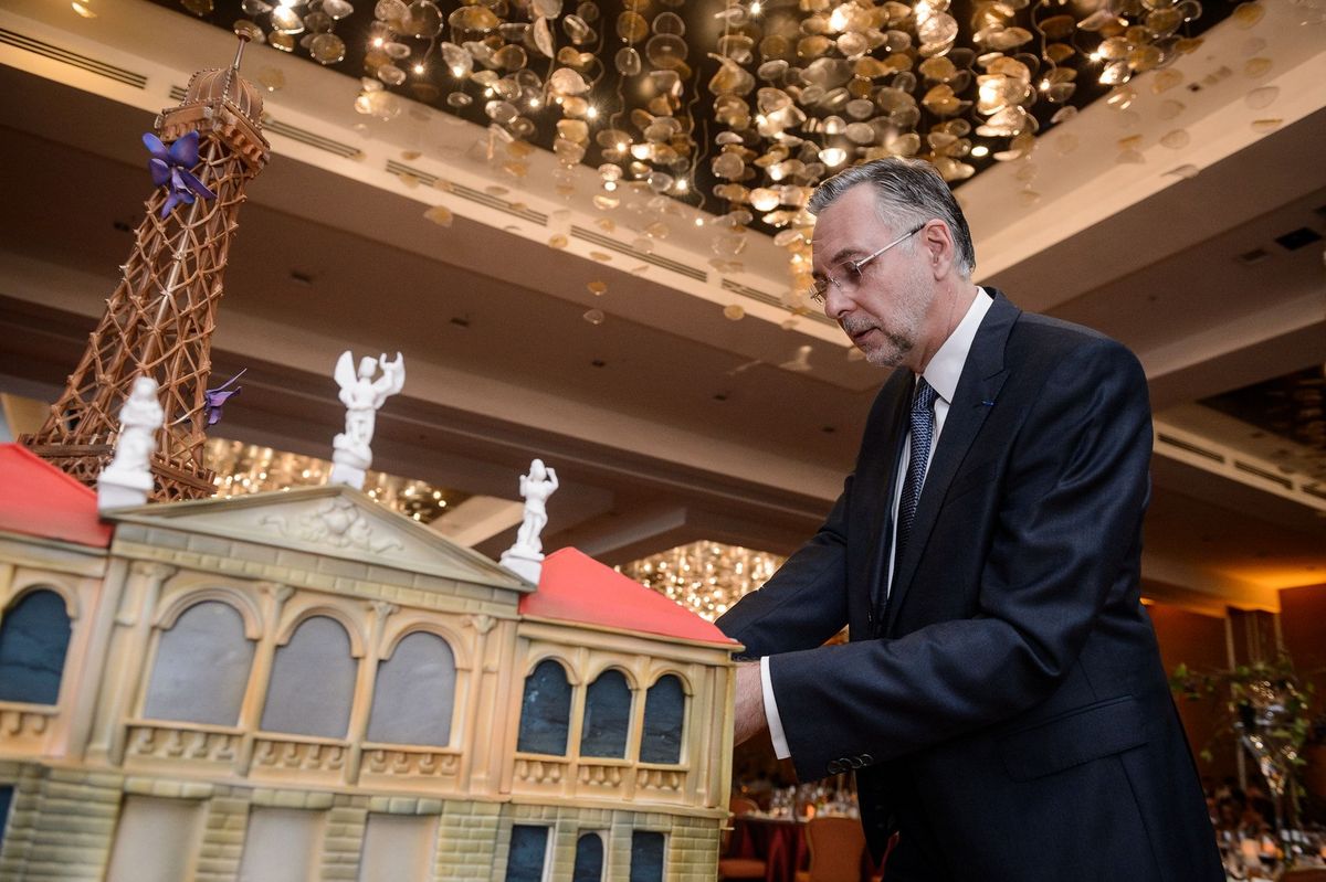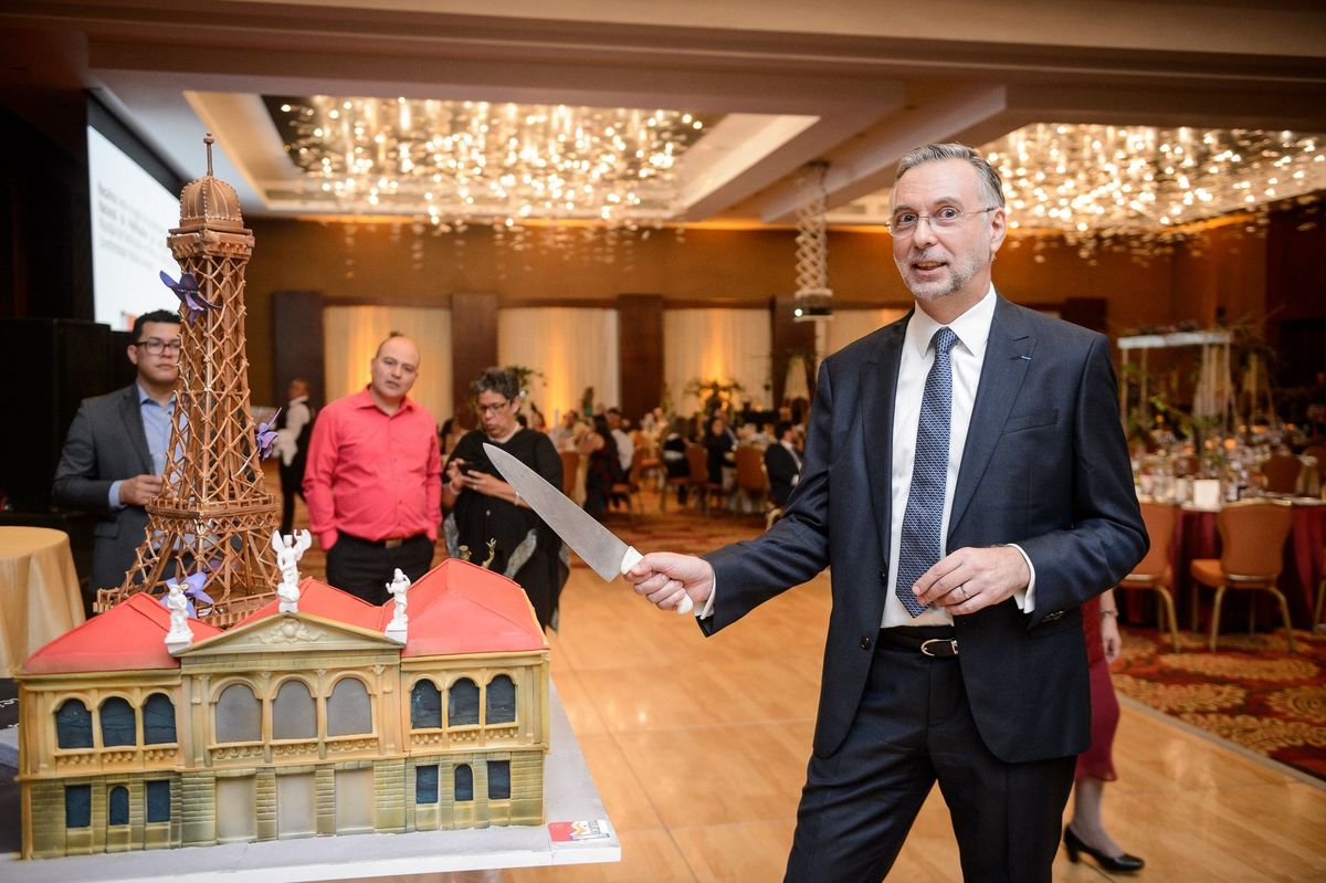 Cette équipe de professionnels de la pâtisserie a confectionné un grand gâteau pour l'évènement, représentant l'amitié franco-costaricienne à travers les symboles de la Tour Eiffel et du Théâtre National du Costa Rica.