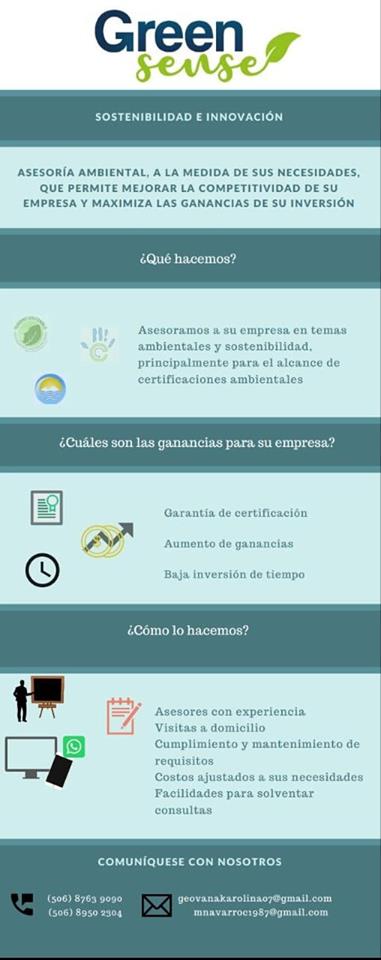 Avec Green Sense, Marcella Navarro vous offre son expertise et vous accompagne dans la mise en oeuvre de certifications de développement durable (Certificado de Sostenibilidd Turística del ICT, Programa Bandera Azul Ecológica, Carbono Neutralidad). Elle propose également des formations personnalisées sur différentes thématiques de l'éducation environnementale.