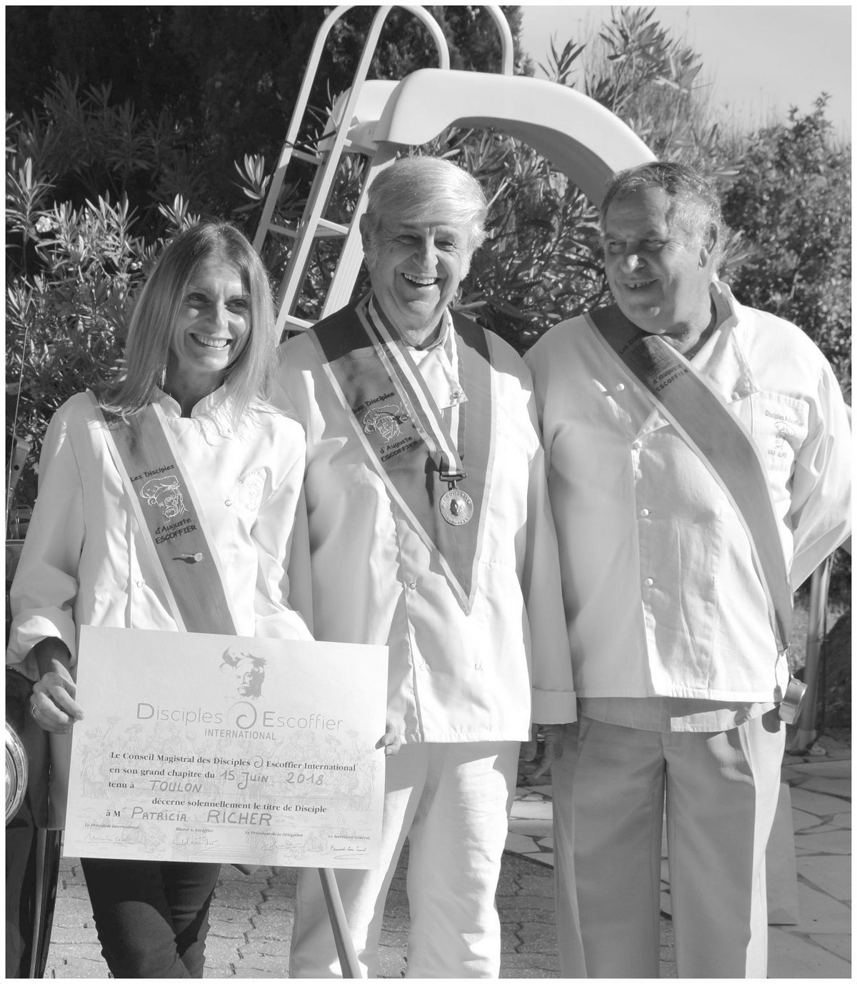 A cette occasion, Patricia Richer, accompagnée par son parrain le Chef Alain Biles, a été intronisée par le Président Monsieur Raymond Macario membre de l' Ordre International des Disciples d’Auguste Escoffier.