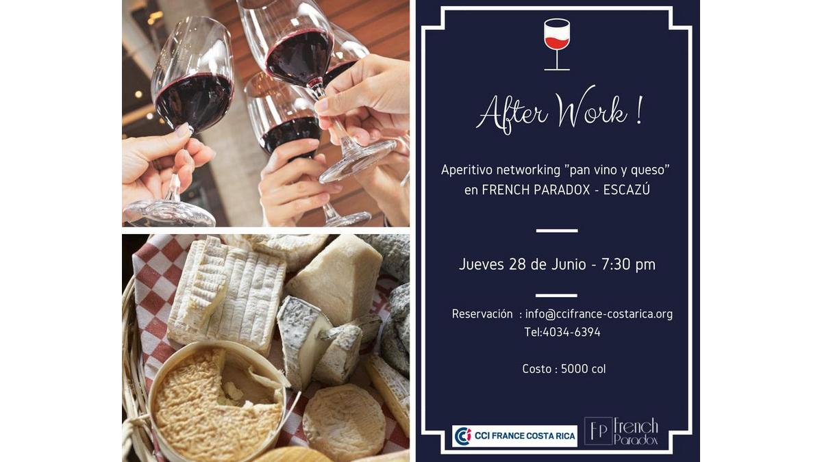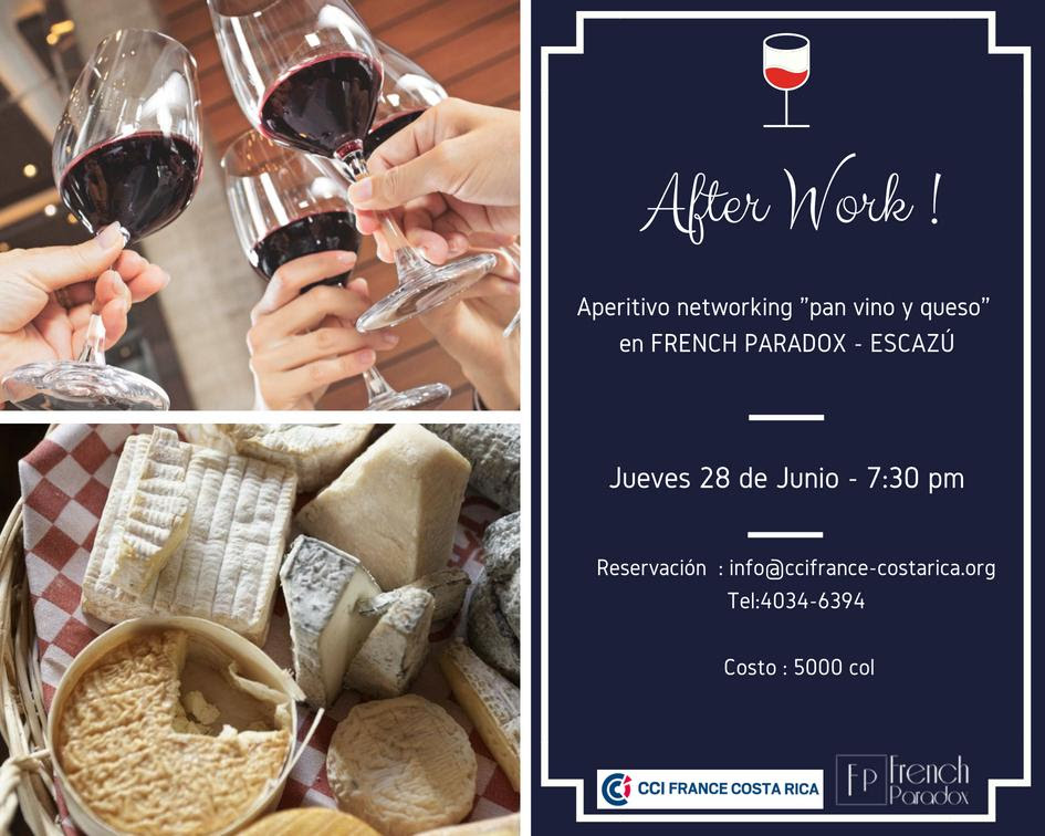 Nous avons le plaisir de vous inviter à participer à notre prochain After Work qui aura lieu le jeudi 28 juin à partir de 7:30pm à French Paradox, Escazú.
