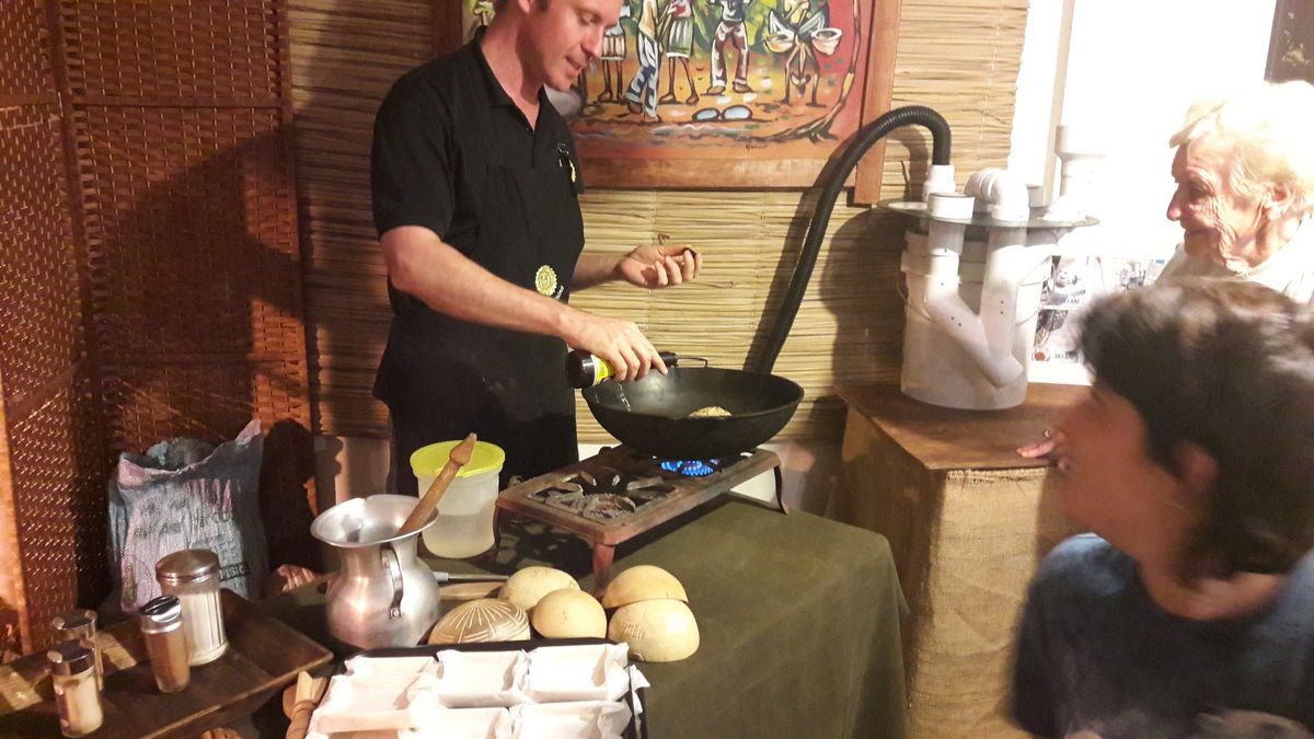 Les participants ont pu préparer leur propre barre chocolatée, et ont beaucoup appris sur le processus artisanal de transformation du cacao. Ils ont également pu savourer un dîner traditionnel carribéen.