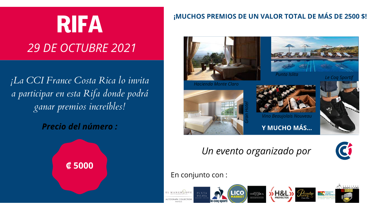 Pour fêter le bicentenaire, la CCI France Costa Rica organise une Tombola de 300 numéros. Vous pouvez gagner de nombreux lots prestigieux ayant une valeur totale de maximum 2500 $