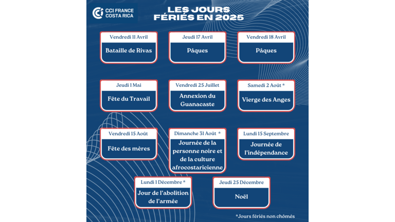 Voici les jours durant lesquels la CCI France Costa Rica sera fermée. Pour toutes demandes sur ces jours, merci de nous contacter via:…