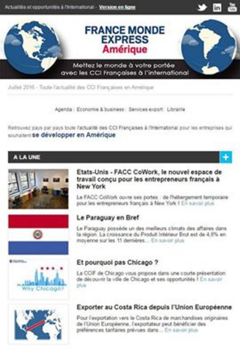 La dernière Newsletter de la CCI FRANCE INTERNATIONAL met le Costa Rica à l'honneur en publiant deux articles sur le pays. Le premier concerne les…