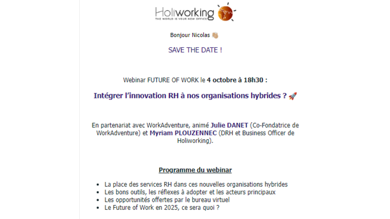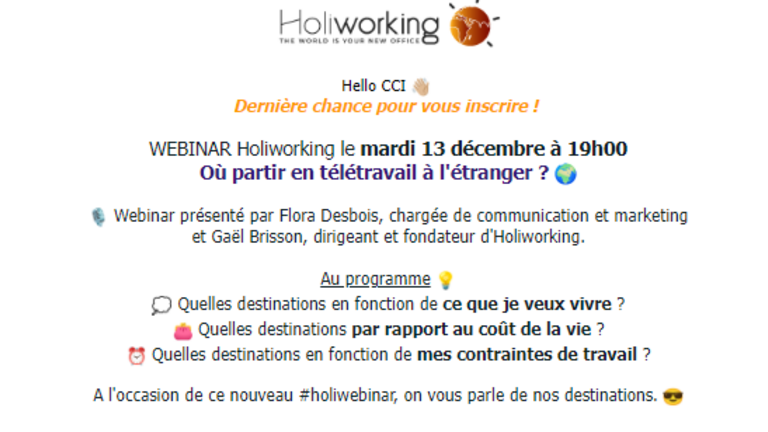 Vous pouvez vous inscrire au webinar de notre affilié Holiworking