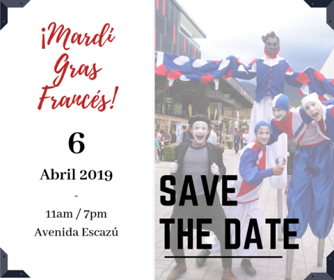 Les invitamos a descubrir, o volver a descubrir, la cultura francesa durante el Mardi Gras francés, el sábado 6 de abril del 2019, desde las 11 am hasta las 7 pm, en Avenida Escazú.
