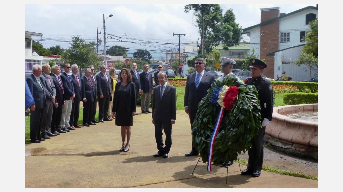 El día anterior, viernes 13 de julio, se desarrolló la ceremonia de ofrenda floral en el Parque de Francia con la presencia del Señor Embajador de Francia, personalidades políticas y una orquesta.