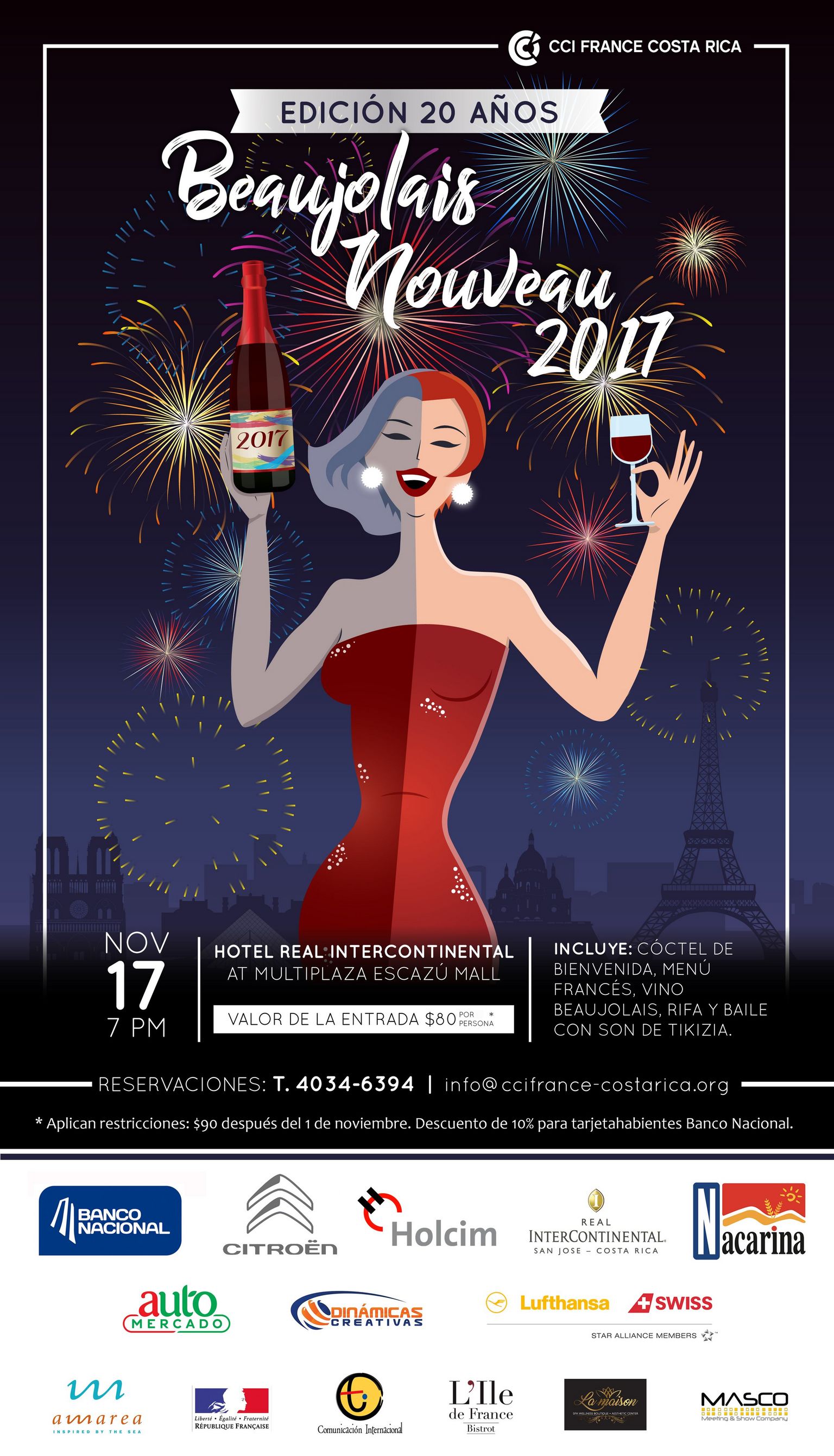 En esta vigésima edición, más de 700 invitados brindarán por la amistad Franco-Costarricense alrededor de un cóctel de bienvenida, un menú gastronómico francés de 5 tiempos con ½ botella de Beaujolais Nouveau, una rifa con premios de lujo y una noche de baile con Son de Tikizia en el Hotel Real InterContinental de Escazú.