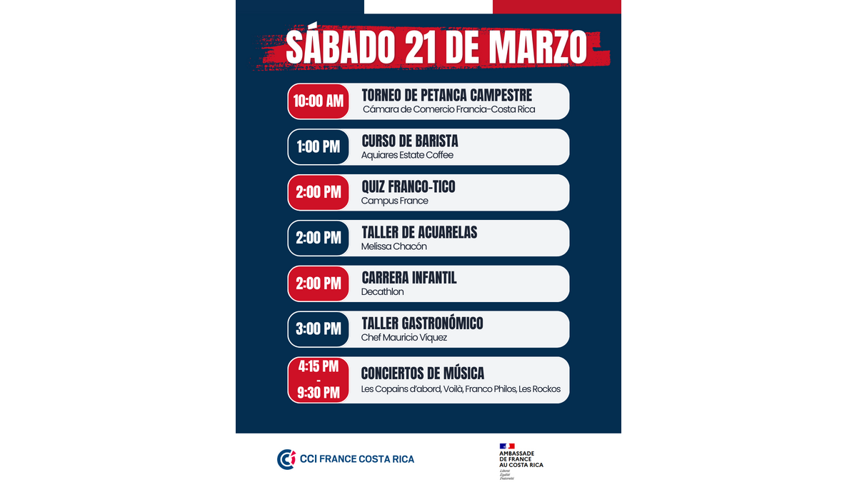Organizado por la Cámara de Comercio Franco-Costarricense, este torneo celebra la petanca, uno de los juegos tradicionales más emblemáticos de Francia. Disfruta de un día lleno de precisión, estrategia y diversión en el parque del centro comercial Aleste, donde podrás competir amistosamente y optar a premios para los ganadores.