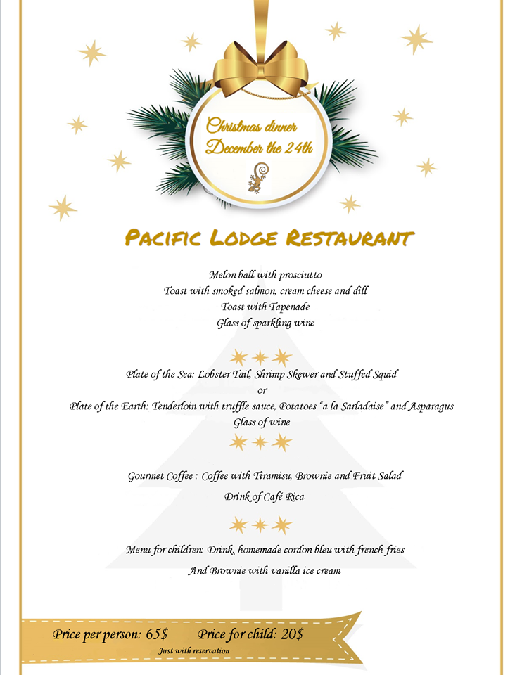 Les compartimos el menú navideño de nuestro afiliado Samara Pacific Lodge. Pueden contactarlos al 2656 1033 o visitar su sitio web www.samarapacificlodge.com