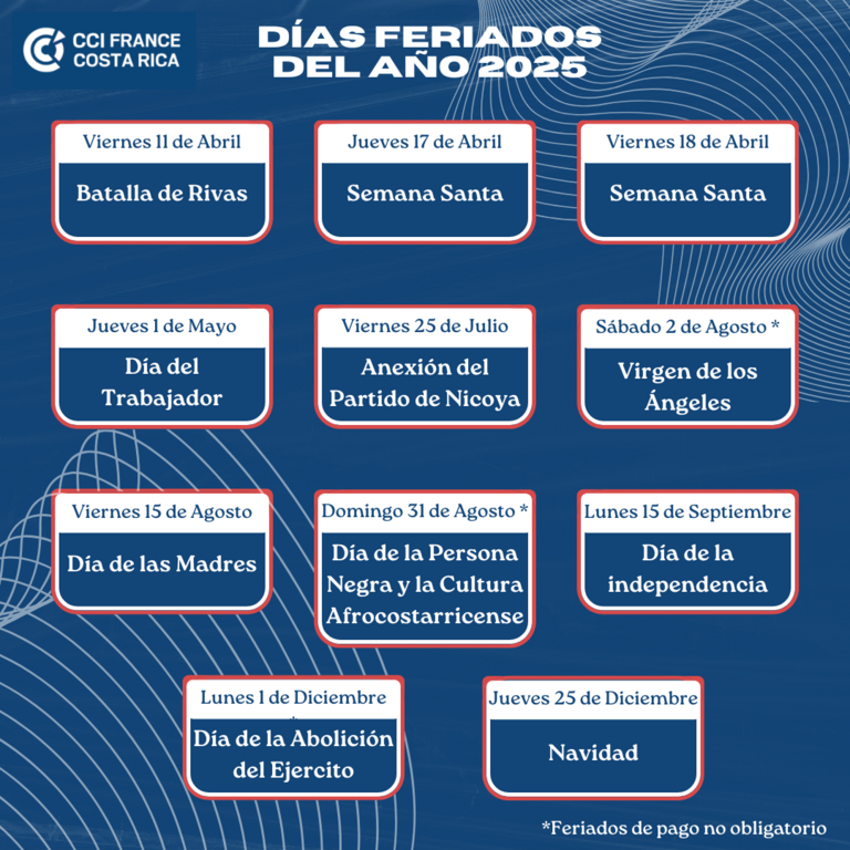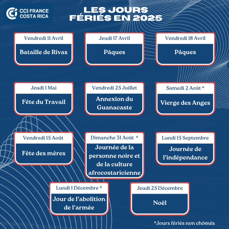 Voici les jours durant lesquels la CCI France Costa Rica sera fermée. Pour toutes demandes sur ces jours, merci de nous contacter via:…
