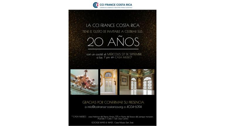 Para celebrar sus 20 años de existencia, la Cámara de Comercio FRANCE COSTA RICA les invita a un cóctel que tendrá lugar en 27 de septiembre, a las 7…
