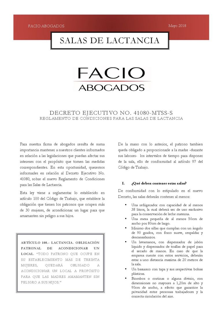 Les compartimos ese documento informativo realizado por nuestro afiliado Facio Abogados sobre el Decreto Ejecutivo No. 41080 sobre el nuevo Reglamento…