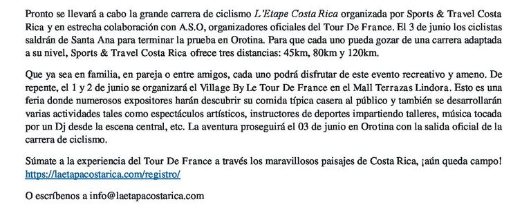 Hagan clic en la imagen para ver el comunicado de Sports & Travel sobre la Etapa Costa Rica. Les recordamos que solo queda una semana para inscribirse…
