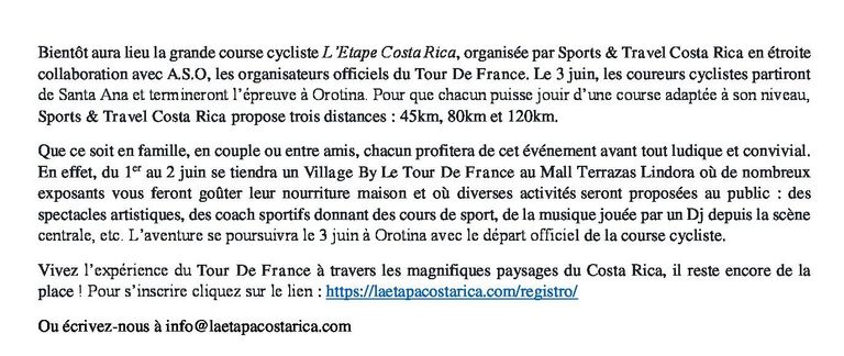 Cliquez sur l´image pour voir le communiqué de Sports & Travel sur l´Etape Costa Rica le mois prochain. Nous vous rappelons qu´il reste seulement une…