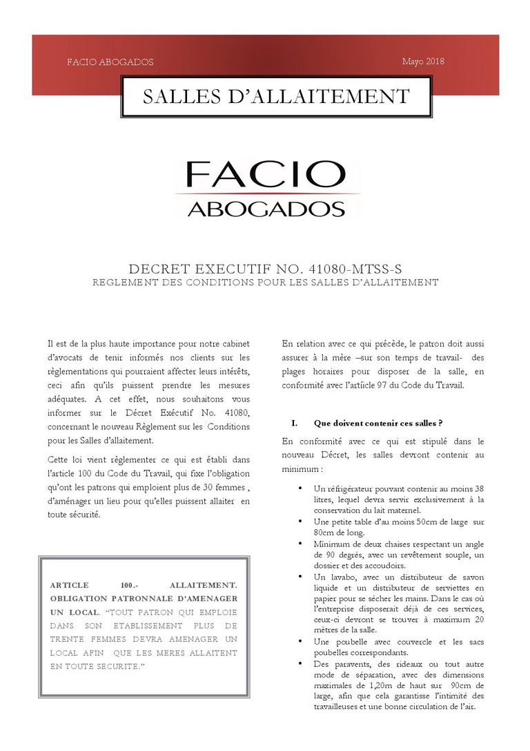 Nous vous partageons ce document informatif réalisé par notre affilié Facio Abogados sur le Décret Exécutif No. 41080 concernant le nouveau Règlement…
