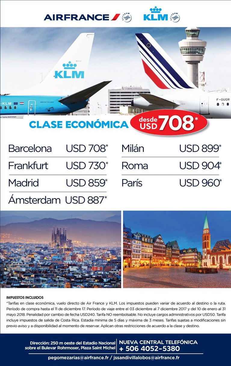 Aproveche el aguinaldo y conozca EUROPA gracias a estas tarifas excepcionales de Air France KLM! Central telefónico de Air France en Costa Rica: +506…