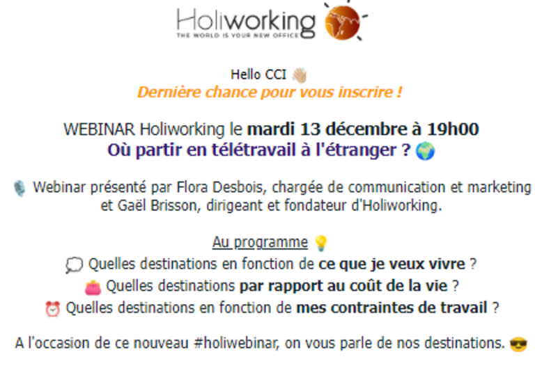 La CCI France Costa Rica le invita a este webinar organizado por nuestro afiliado Holiworking