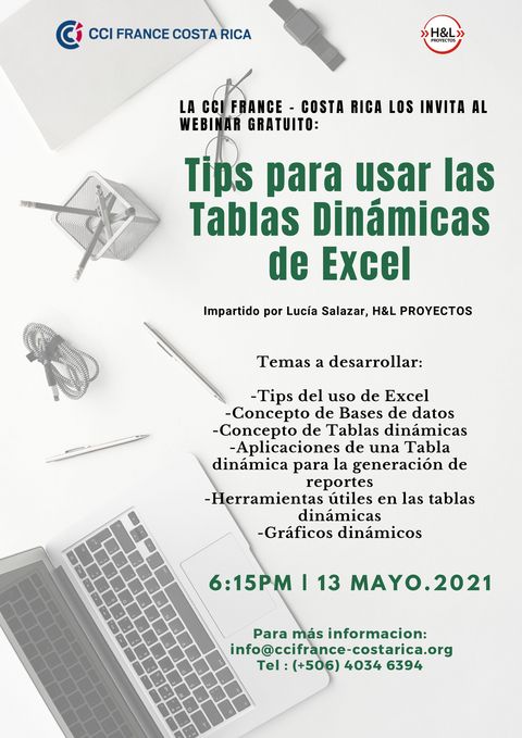 CCI France Costa Rica vous invite à la coférence gratuite "Conseils d'utilisation des tableaux croisés dynamiques Excel" donné par Lucía Salazar, H&L Proyectos.