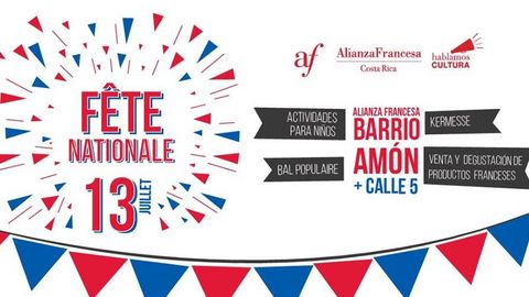 Le 13 juillet prochain, nous vous invitons à venir célébrer la Fête Nationale, avec l'ensemble des associations françaises au Costa Rica. Petits et grands pourront, tout au long de la journée, déguster des produits typiques français, ainsi que profiter d'activités culturelles et de concerts.