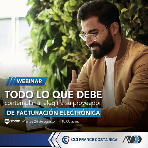 La CCI France Costa Rica los invita al webinar gratuito que realizará en conjunto con su afiliado AVD Internacional, llamado "Todo lo que debe contemplar al elegir a sur proveedor de Facturación Electrónica".